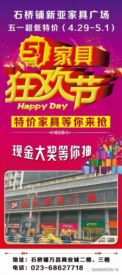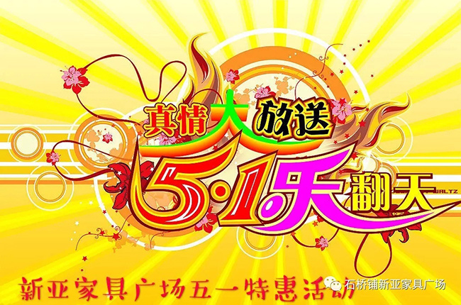 營(yíng)業(yè)時(shí)間 ( 9:30-17:30 )石橋鋪新亞家具廣場(chǎng)五一超低特價(jià),聚惠來(lái)襲,精品繁多
